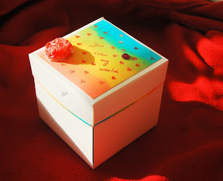 I have created one anniversary explosion box using white cardstock and distress inks..